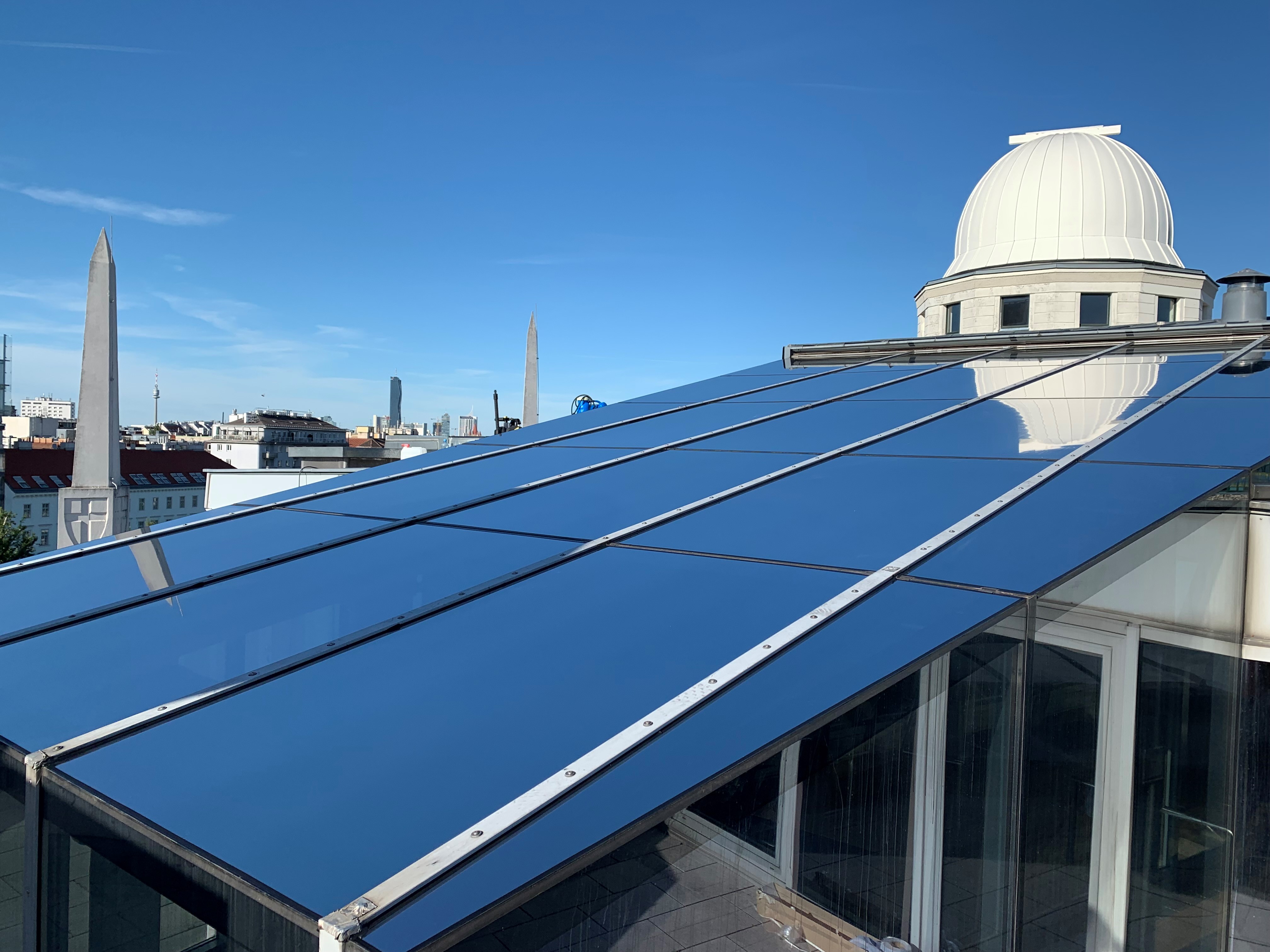 Diese technischen Gegebenheiten lassen daher die Montage einer Innenfolie nur bedingt zu. Der Einsatz einer Außenfolie der Serie GHP Primus hingegen, schließt – bei gleichem Schutz vor Sonneneinstrahlung- dieses Risiko aus. Die Folien zeichnen sich zusätzlich durch eine hohe Lebenserwartung und eine besondere Kratzbeständigkeit aus.