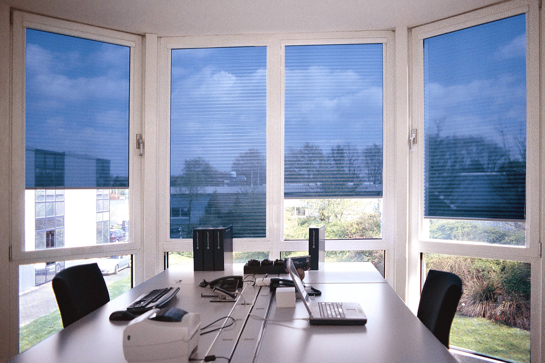 Das OPALVARIO® Rollosystem OV 40 lässt sich aufgrund seines modularen Aufbaus vielfältig einsetzen. Speziell als Lichtregulierung für Bildschirmarbeitsplätze entwickelt, erhalten die Systeme bei einer Blendreduktion gemäß den EU–Richtlinien die klare Sicht nach außen.